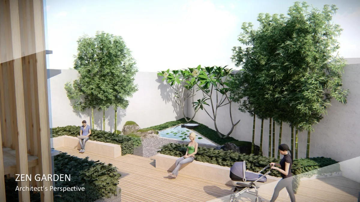 ✔ Landscaped gardens and Zen-inspired green pockets